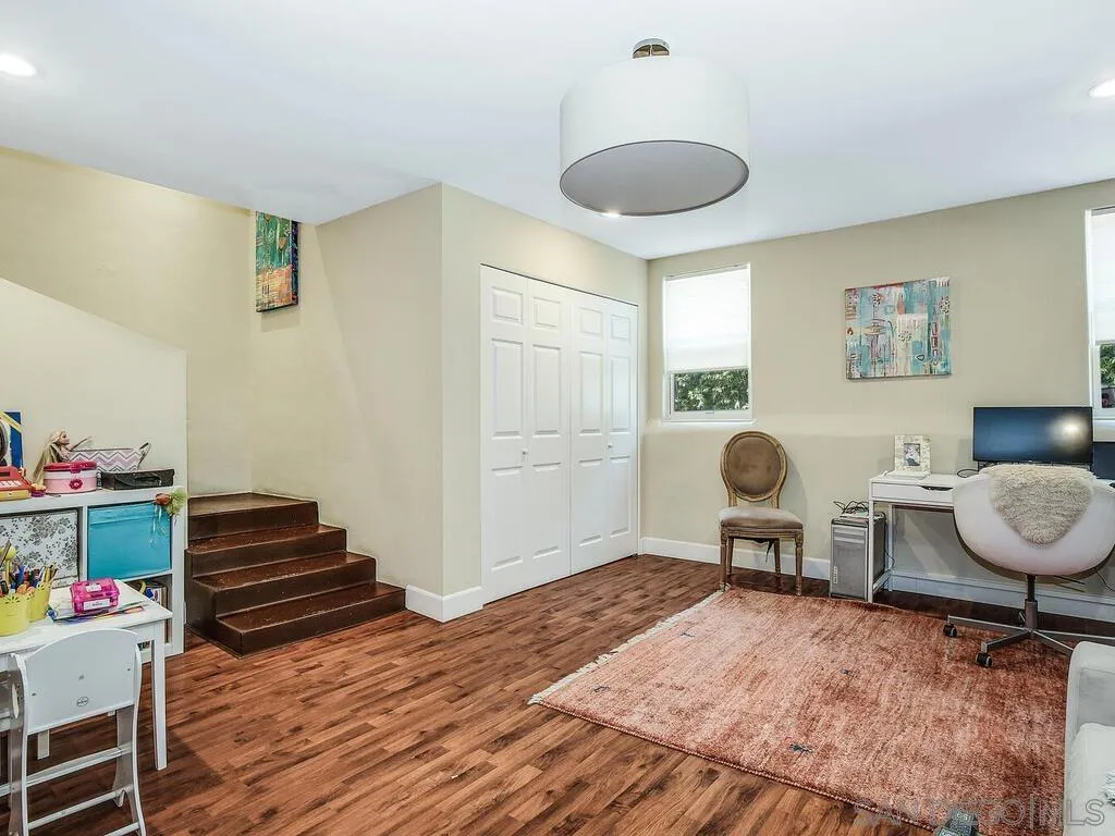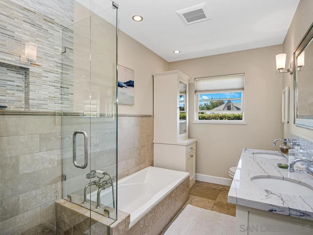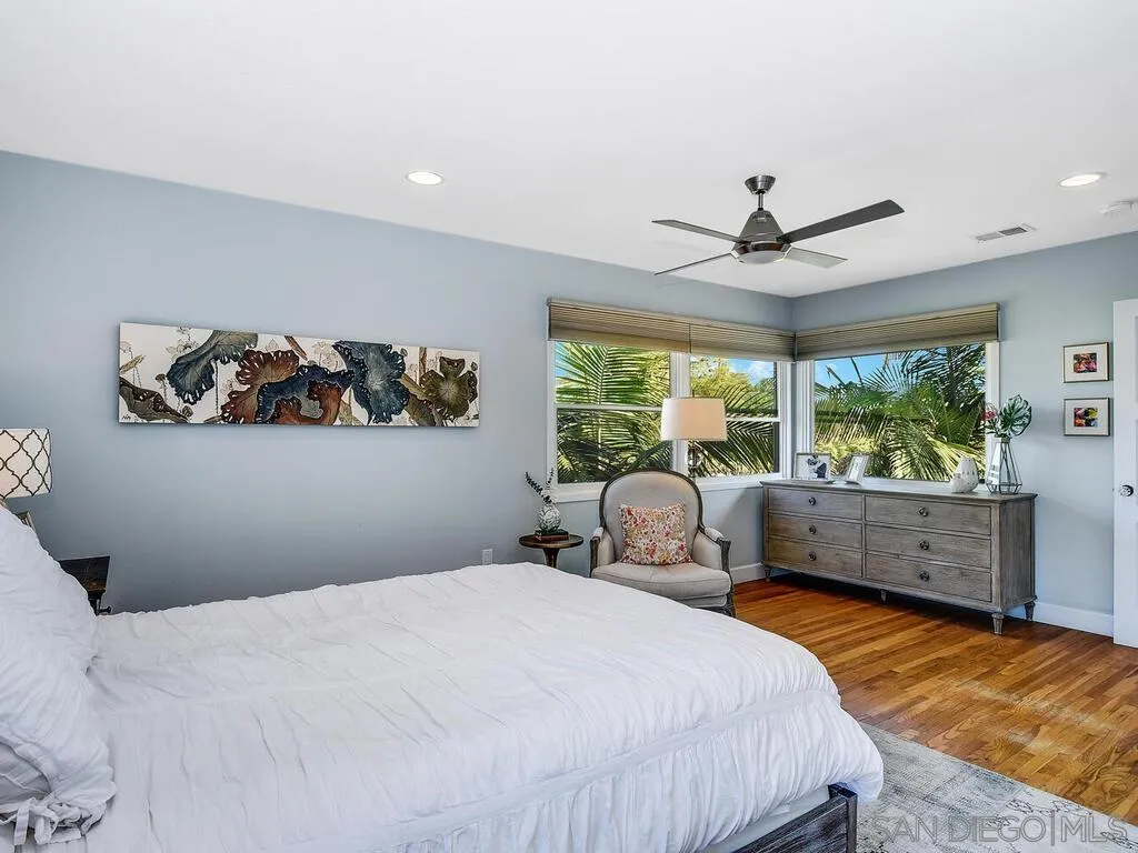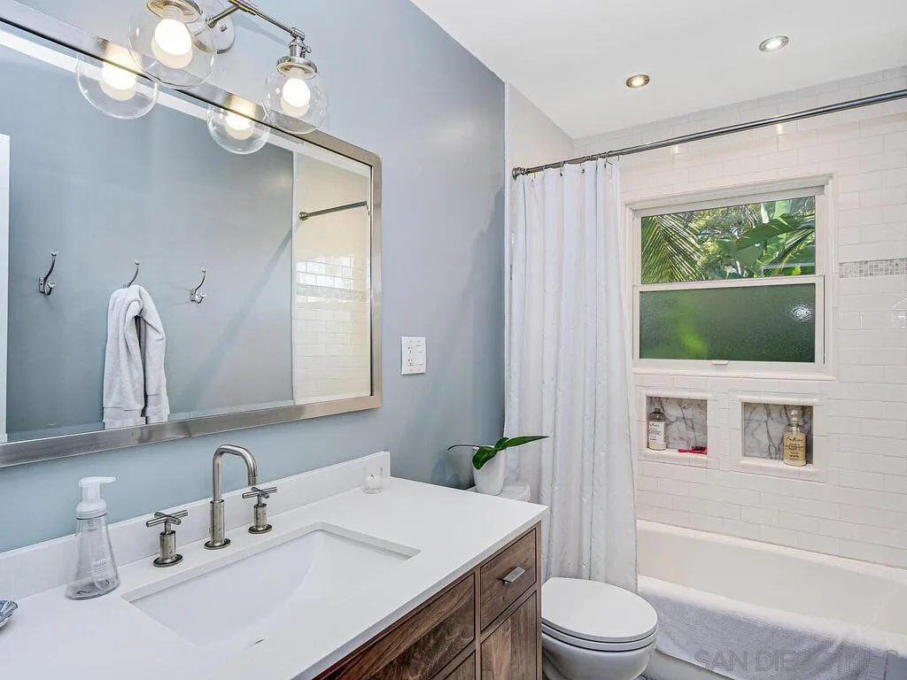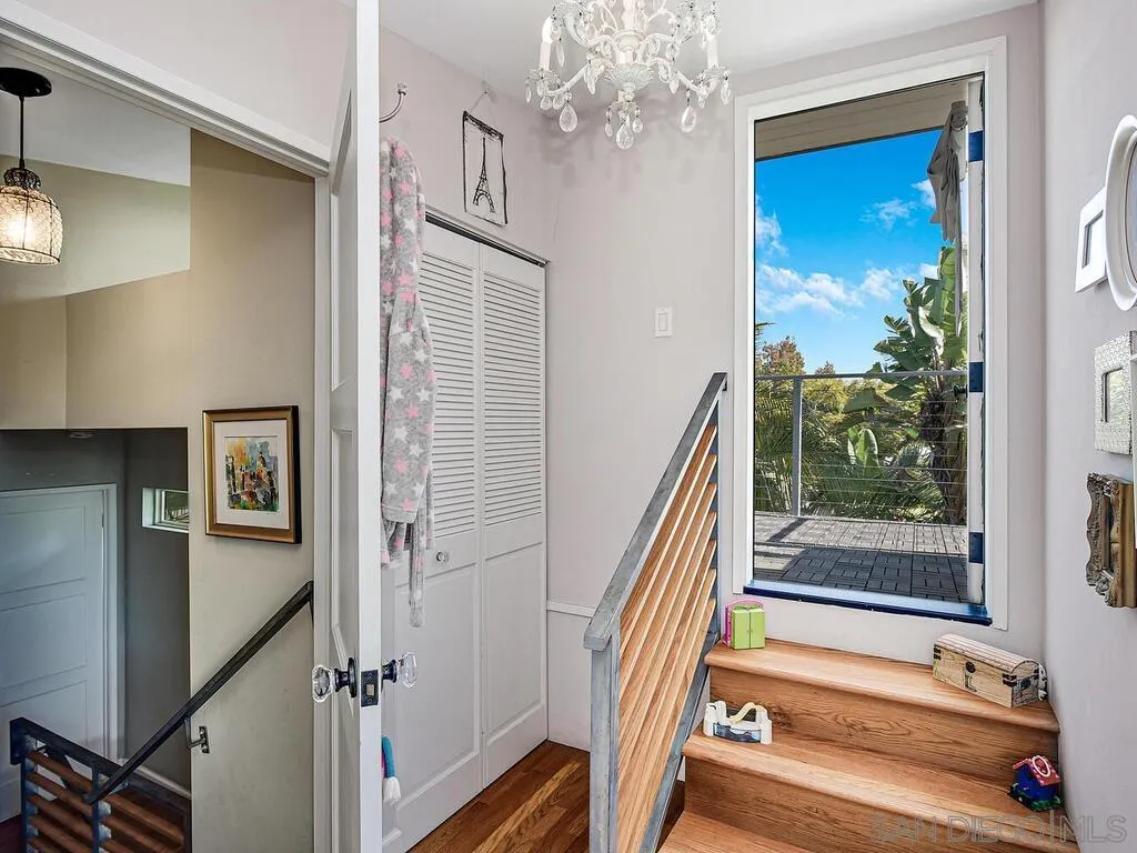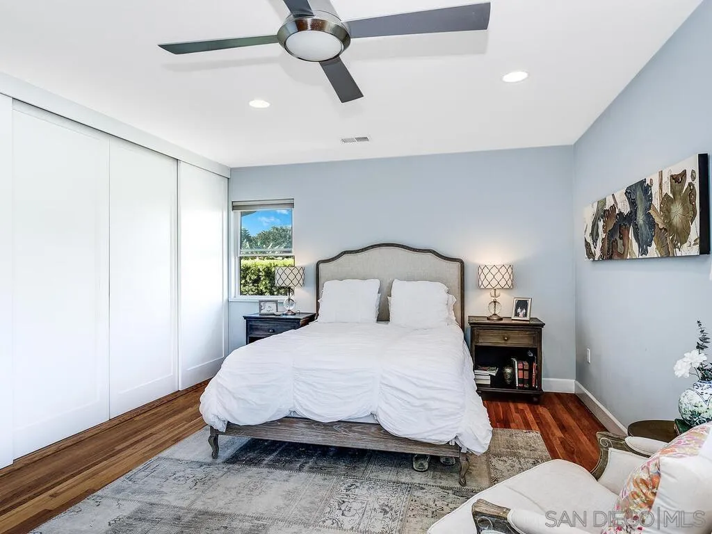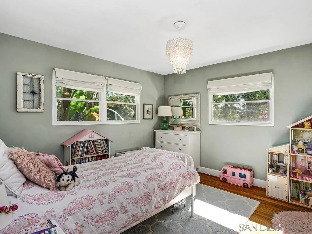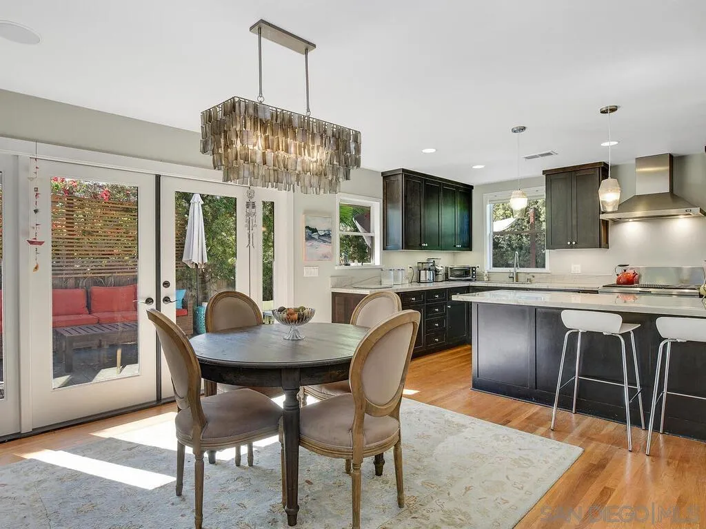 Presenting this stunning residence, ideally positioned on a prominent corner lot in the highly sought-after area of Normal Heights. With its prime location, you'll enjoy the convenience of strolling to all the offerings along Adams Avenue. Impeccably remodeled, this home boasts a host of modern upgrades, including a new HVAC system, a fast charge port for your electric vehicle, updated electrical work with a new sub-panel. The dining area features elegant French doors, seamlessly connecting to a Mangaris hardwood deck on the side of the house, creating a delightful space for entertaining loved ones. Throughout the entire house, you'll find double-paned fiberglass windows, providing both energy efficiency and a tranquil ambiance. Every detail has been carefully considered, resulting in a thoughtfully designed home with three bedrooms, accompanied by a converted garage, which does not form part of the 1501 SqFt. This space could be used for a home office, kids play room, or a rental unit to help supplement your monthly mortgage. This property offers an exquisite blend of style, comfort, and functionality, making it a true gem in the heart of Normal Heights.