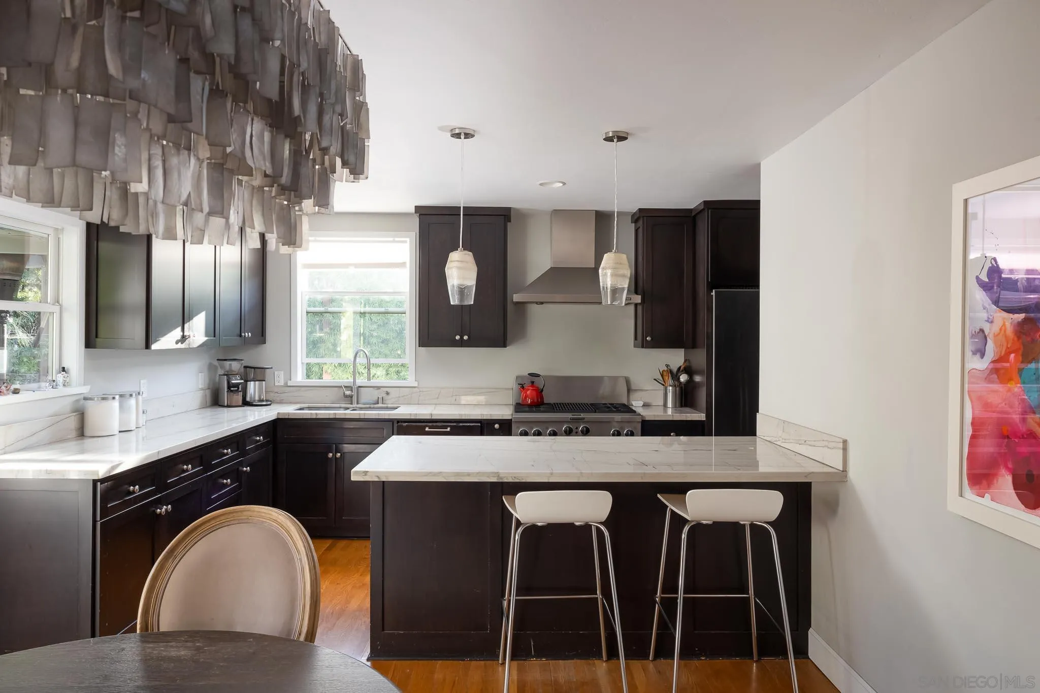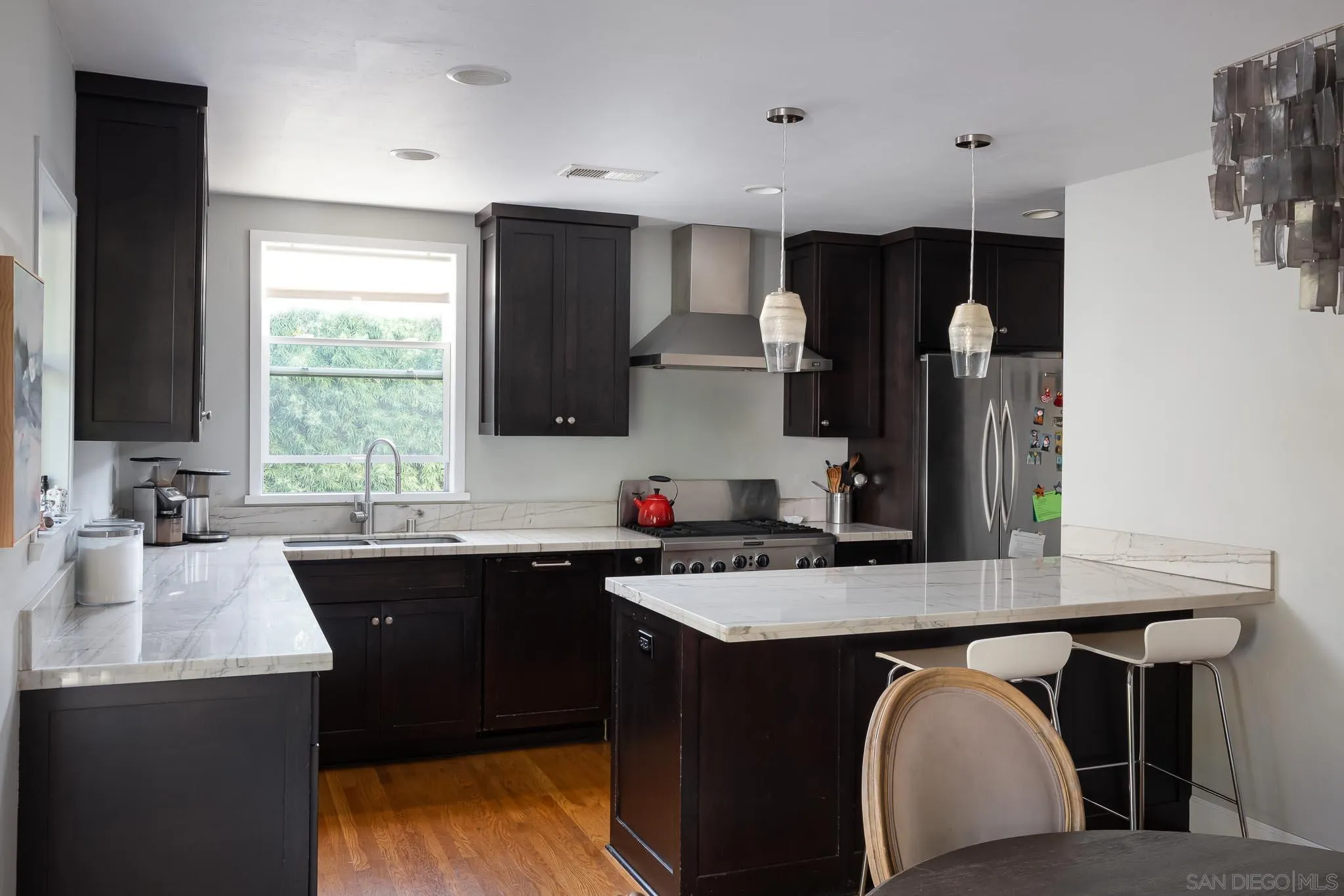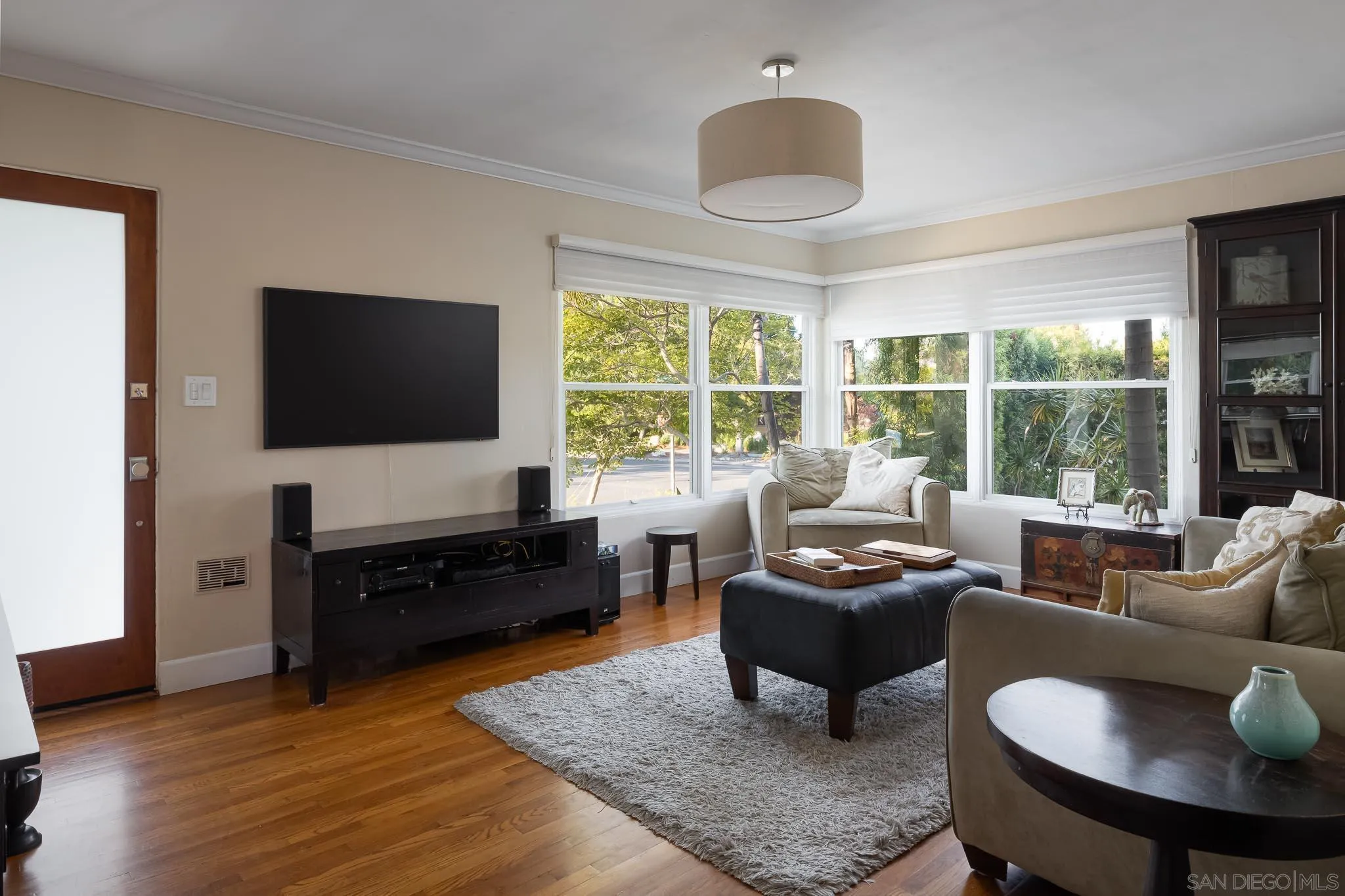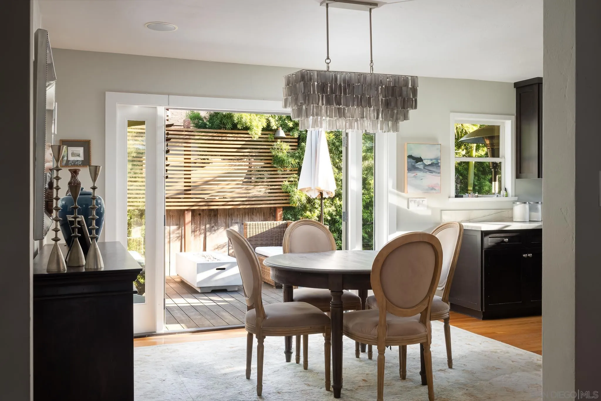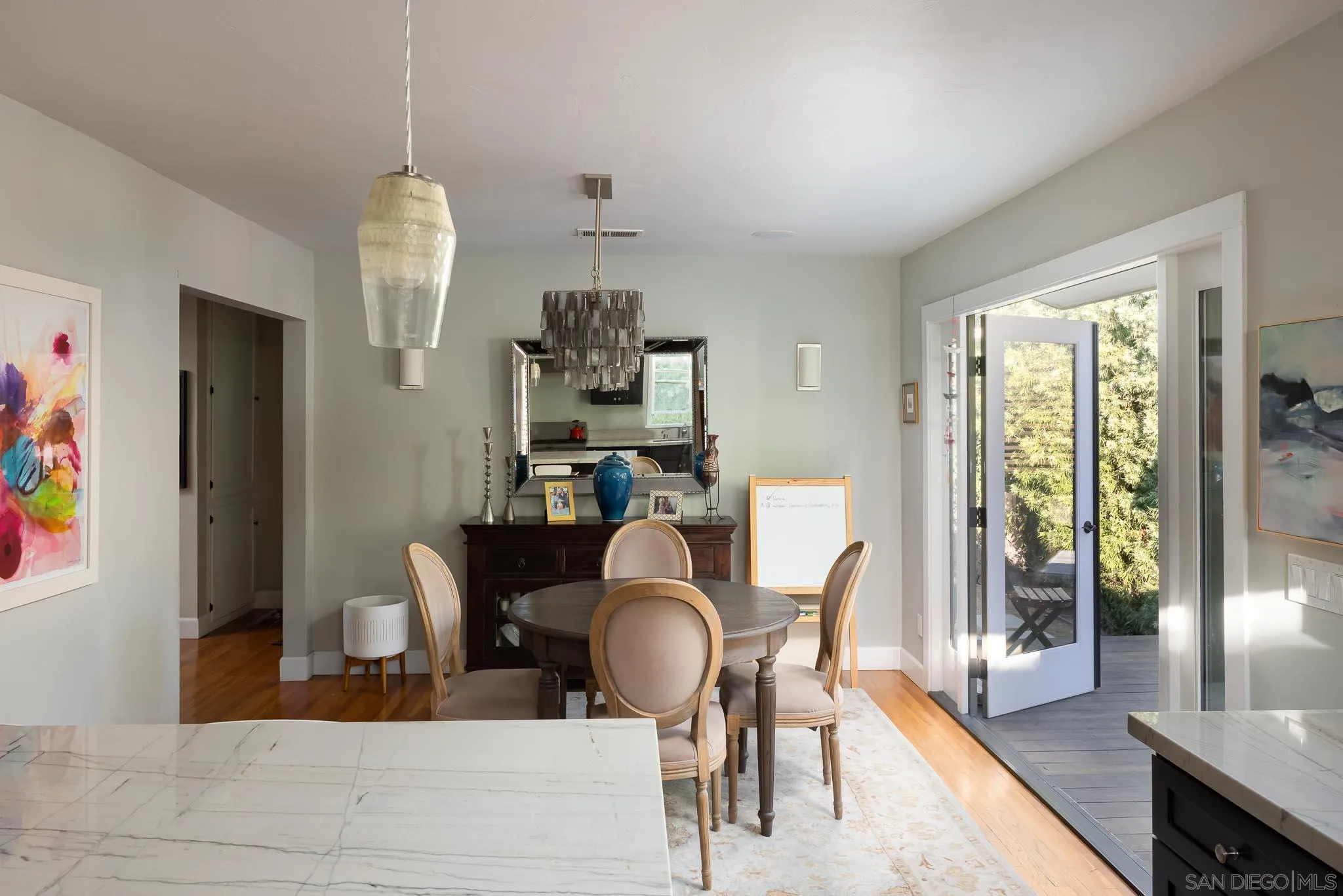 Presenting this stunning residence, ideally positioned on a prominent corner lot in the highly sought-after area of Normal Heights. With its prime location, you'll enjoy the convenience of strolling to all the offerings along Adams Avenue. Impeccably remodeled, this home boasts a host of modern upgrades, including a new HVAC system, a fast charge port for your electric vehicle, updated electrical work with a new sub-panel. The dining area features elegant French doors, seamlessly connecting to a Mangaris hardwood deck on the side of the house, creating a delightful space for entertaining loved ones. Throughout the entire house, you'll find double-paned fiberglass windows, providing both energy efficiency and a tranquil ambiance. Every detail has been carefully considered, resulting in a thoughtfully designed home with three bedrooms, accompanied by a converted garage, which does not form part of the 1501 SqFt. This space could be used for a home office, kids play room, or a rental unit to help supplement your monthly mortgage. This property offers an exquisite blend of style, comfort, and functionality, making it a true gem in the heart of Normal Heights.